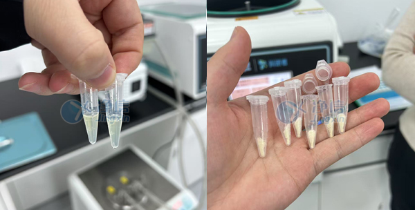 實(shí)驗(yàn)前樣本為淺黃色透明液體,體積較大。實(shí)驗(yàn)后樣本體積明顯減小成固體狀,樣品完全濃縮干透。整個(gè)過程在低溫下進(jìn)行,真空下快速蒸發(fā)的同時(shí),很好的維護(hù)了蛋白活性。