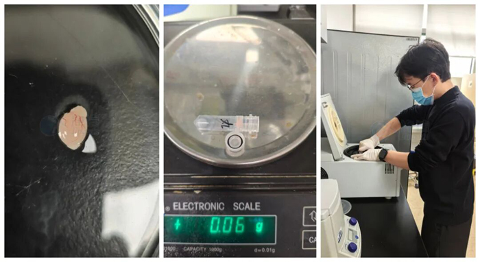 實驗開始時,我們取出0.06mg的小鼠睪丸組織,剪碎后加入磁珠和1mL解離酶,隨后將試管放入提前預熱好的儀器中,選擇對應組織的專用程序——按下啟動鍵,儀器就進入自動工作模式。