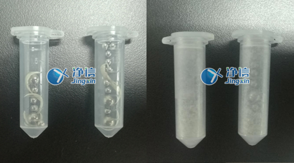 1.將指甲浸入液氮中停留若干分鐘后剪裝入研磨管內,放入幾顆鋼珠;