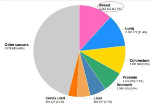 2020年全球常見新發癌癥類型及占比