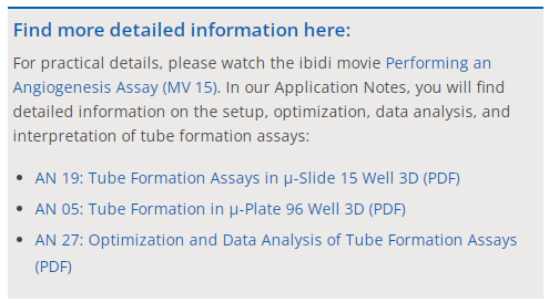 For a tube formation assay (also called angiogenesis assay), endothelial cells are seeded on top of a 10 μl gel layer (basement membrane-like surface), where they form capillary-like structures. Typically, Matrigel? is used. The tube formation ability of the cells can be used to analyze the pro- or anti-angiogenic potential of various drugs.