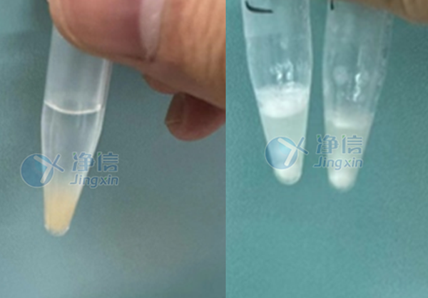 從研磨對比圖中,可清晰的看到蜱蟲被充分研磨,后續(xù)進行離心,離心后分為三層,上層為水相,下層為有機相,中層是我們要提取的蛋白質(zhì)。