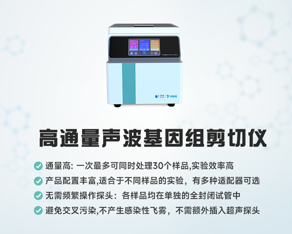凈信高通量聲波基因組剪切儀它以其效率高的特點,解決了基因組學樣品前處理的難題。其優勢體現在: