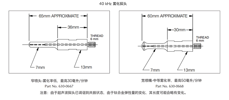 7 mm,1根 (請指定探頭部件號,除非另有說明,否則霧化器將隨附有霧化探針,零件號630-0667
