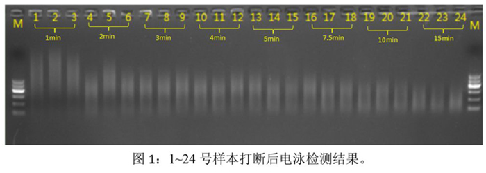 實驗目的:瓊脂糖凝膠電泳檢測打斷效果