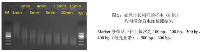 3.相同處理時長的樣本混合后,瓊脂糖凝膠電泳檢測結果: